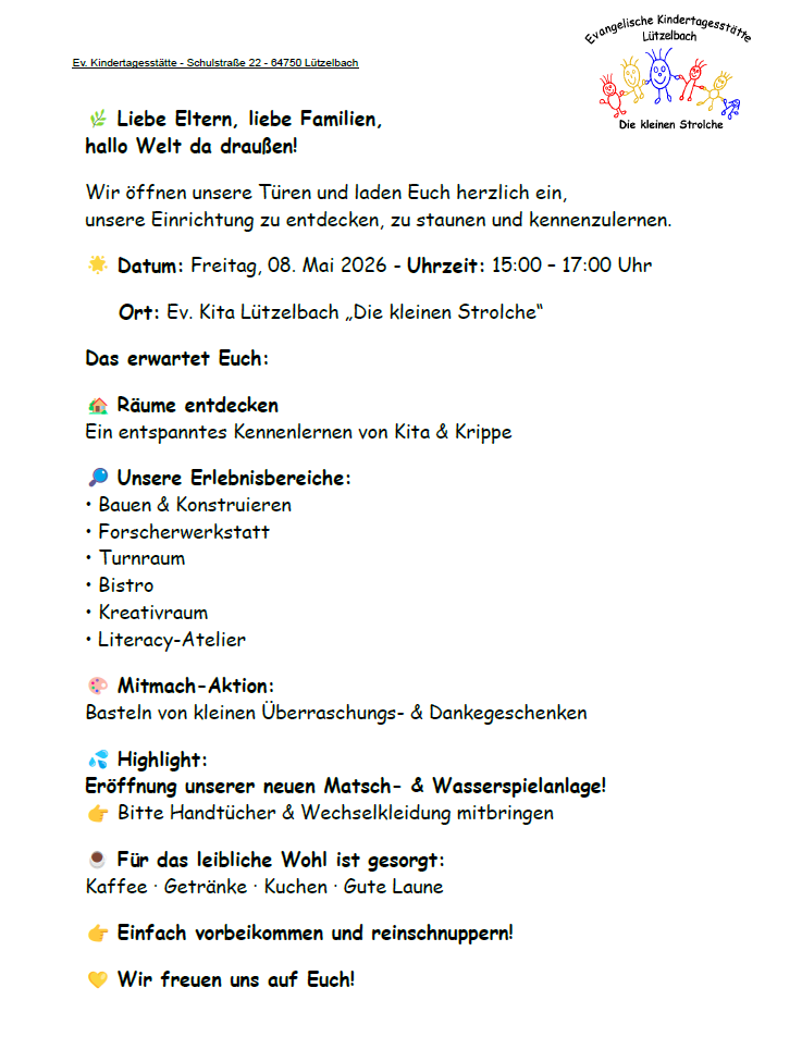 hiermit präsentieren wir Ihnen voller Stolz die Homepage unserer Evangelischen Kindertagesstätte „Die kleinen Strolche“. Bei der inhaltlichen Umsetzung begleitet und unterstützt uns unsere Kirchengemeinde – hier geht´s zur Homepage: