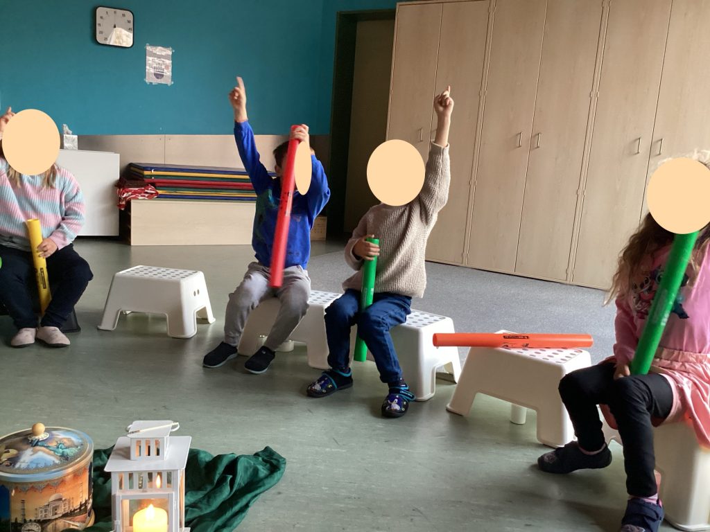 Mit den Boomwhackers wurde von einem Kind ein Rhythmus vorgegeben. Die Aufgabe der anderen Kinder bestand darin. Genau zuzuhören und genau zu beobachten, um dem Rhythmus des Kindes folgen zu können. Das sensibilisiert die Kinder auch im Umgang miteinander. Es klappte bei vielen schon ganz gut. 👍🏽