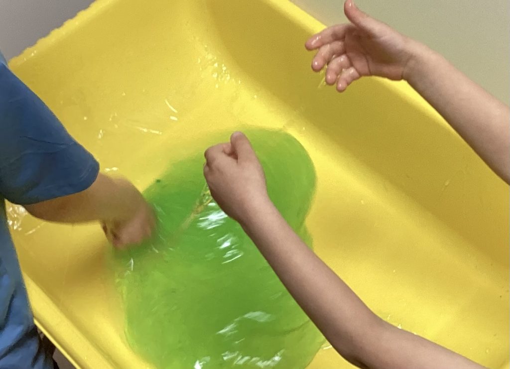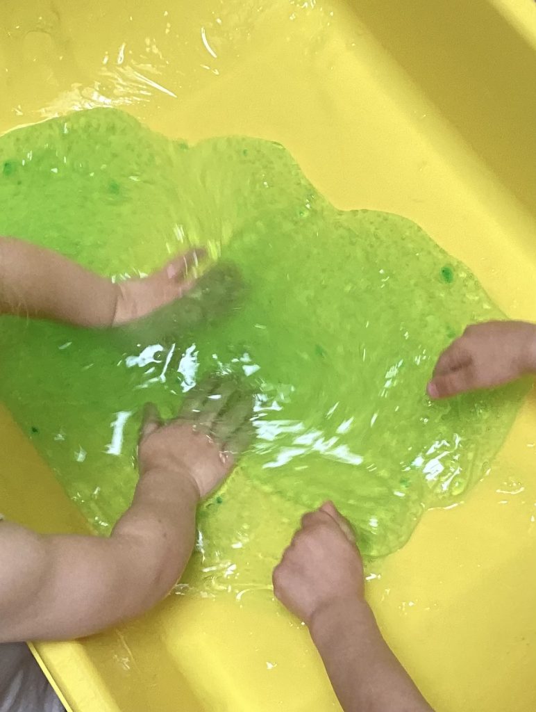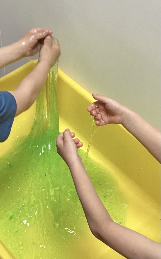 Heute gab‘s „grünen Schleim“ in unserer Kita: Wo kam er her? Wie fühlt er sich an?